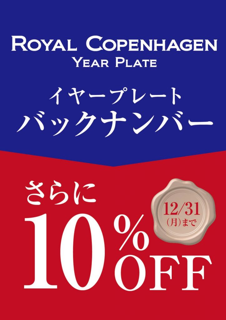 また、本日より年内最終営業日まで、ロイヤルコペンハーゲンのイヤープレートのバックナンバーが