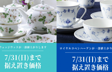 アラビア、イッタラなどの北欧ブランドや、ウェッジウッド、マイセン、ヘレンドなど