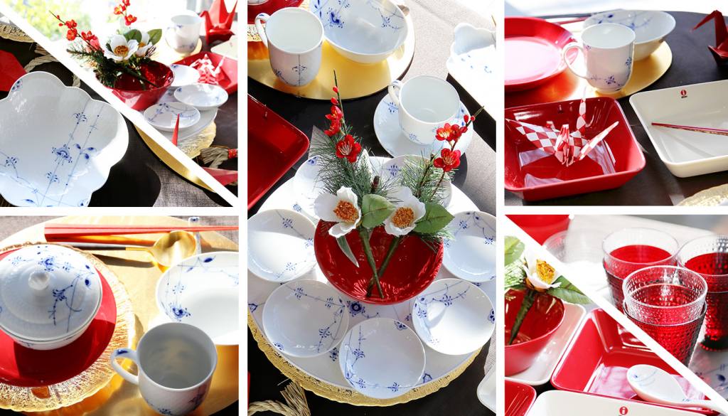 最近は和食が世界で広がり、海外のブランドも和を意識したテーブルウェアが多くなってきました。組み合わせているロイヤルコペンハーゲンのシリーズ(ブルーパルメッテ)は、そういった和食ブームが来る前からアジアの食文化を意識して制作されていたシリーズで、和の食卓にも親和性がありお勧めデザインです。そういったコンセプトの食器はもちろん取り入れ易いのですが、カラーや形、ブランドやシリーズを越えた組合せのアイデアで、和の食卓を演出するコーディネートを楽しんでいただけたらと思います。
