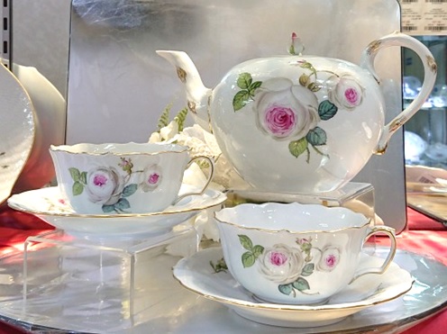 マイセン ホワイトローズ ティーカップ&ソーサーペア ティーポットセット