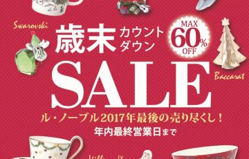 神戸で唯一の洋食器専門店 ル・ノーブル神戸三宮店です! もう気分はクリスマスですね~♪♪♪町中が明るい飾りで楽しくなっていますね。 ル・ノーブルでは☆歳末カウントダウンSALEがスタートしました☆ クリスマスオーナメント…