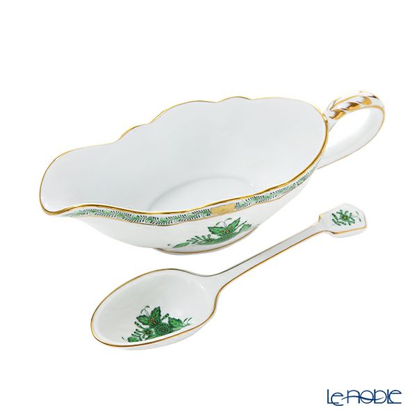 ヘレンド アポニーグリーン AV 00217-0-00 & 00238-0-00 ソースボート& ソースレードル20cm セット