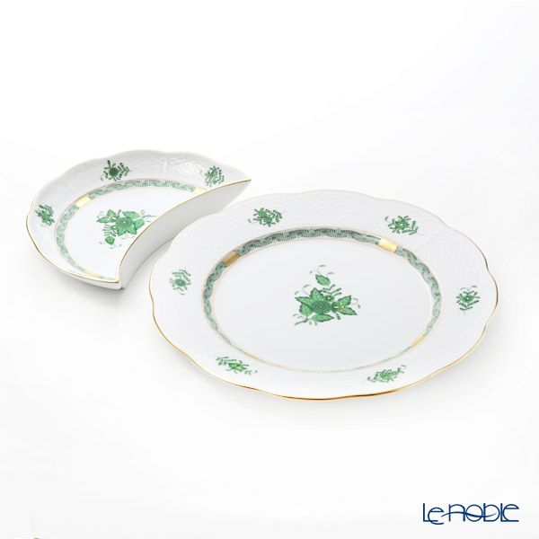 ヘレンド アポニーグリーン AV プレート27cm & クレセントディッシュ20cm セット