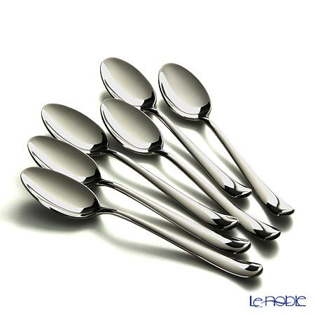 1923年創業のイタリア、ブガッティ社の中でもベストセラー・シリーズであるセッティモシエロ(Settimocielo=イタリア語で最高を意味する「7番目の天国」という意味)という名の通り、定番のディナー、デザート用のアイテムに加えて、チーズナイフやサービングのアイテムも幅広く揃うシリーズです。シンプルでありながら、自然なカーブが上品で手にしっくりとなじむ秀逸なデザインです。エスプレッソコーヒのカップソーサーに合わせる時や、小さなデザートに重宝する、小さめのスプーンです。使用しているステンレスは、一般的なものよりもニッケルの含有量が多い「18-10ステンレス」と呼ばれる素材です。鉄に18%のクロムと10%のニッケルを含んだステンレスとなり、耐蝕性(腐敗に強い)と耐久性に優れた高品質な素材です。また、「金気(かなけ)」と呼ばれる鉄系素材特有の味や臭いの低減効果もあると言われています。ミラーポリッシュの表面の艶が美しく輝き、適度な重さが有り、エレガントな高級感も感じられます。材質:ステンレス18-10