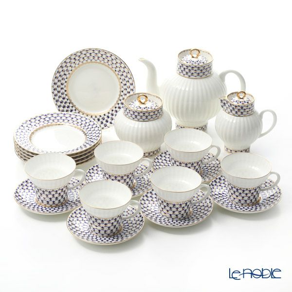 コバルトの網目模様に金の美しい装飾が特徴の「コバルトネット」シリーズは、女帝エカテリーナ2世に献上されたディナーセットを基に制作されました。そのユニークで上品なスタイルは世界中で高く評価されており、1958年にはブリュッセル万国博覧会にてグランプリを受賞しました。