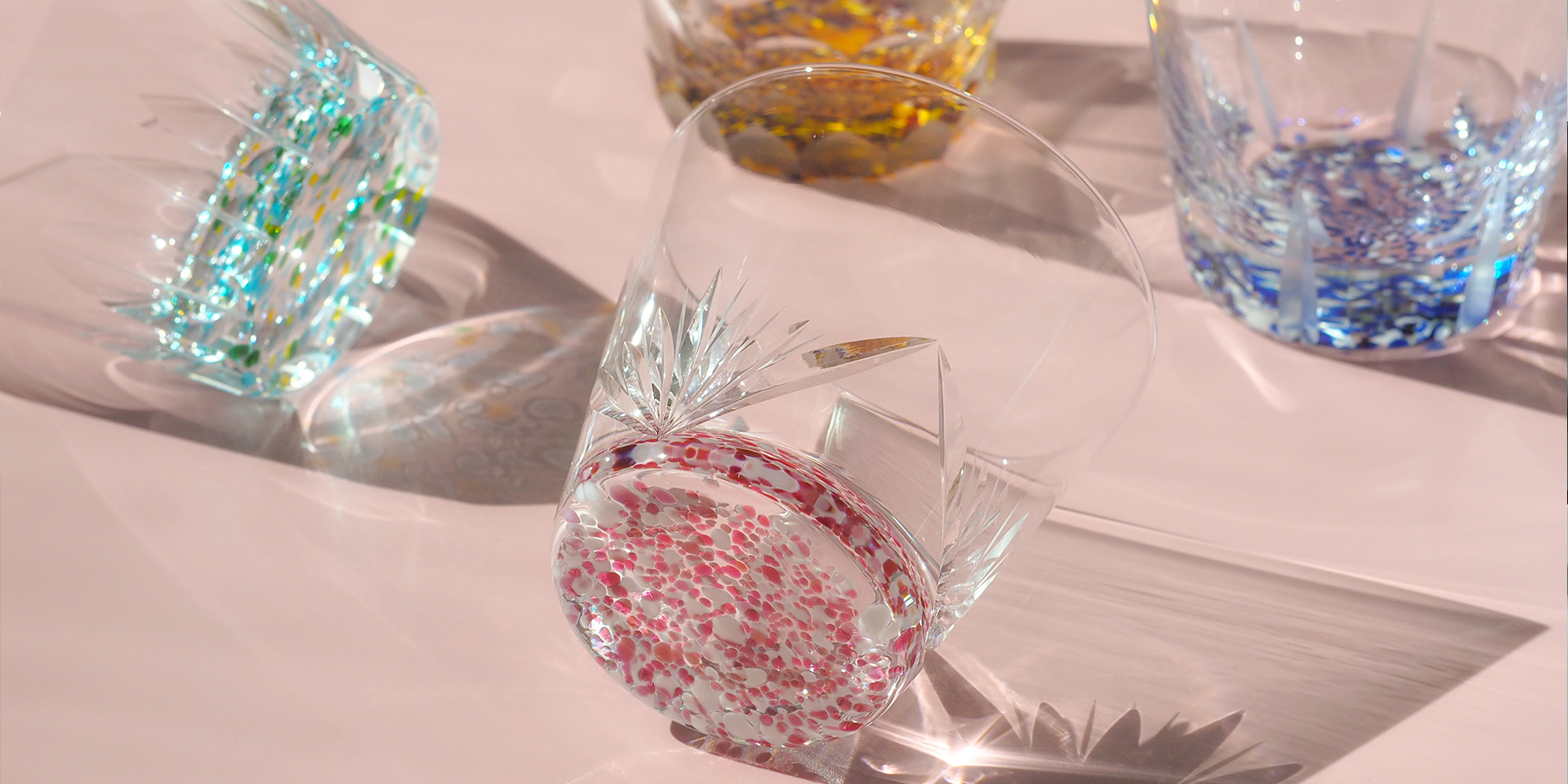 当時は塩や薬品の保存ビンなどを製造していましたが、昭和中期ごろより業務転換を行いガラス食器の分野へと参入。それから今日まで業務用食器や生活雑貨、カットグラスなどの高級食器と多岐にわたるガラス製品を作り続け、先人たちの築いた「吹きガラス」の技術を脈々と受け継いでいます。