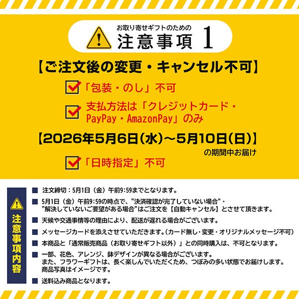 こちらのお取り寄せギフトは5月6日(水)~5月10日(日)の"期間中"のお届けとなります。