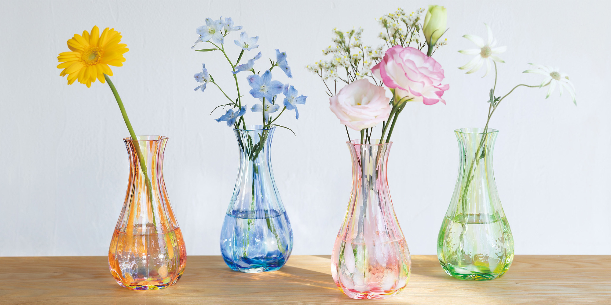 みちのくの豊かな自然に育まれ、のびやかな美しさを持つ「津軽びいどろ」。