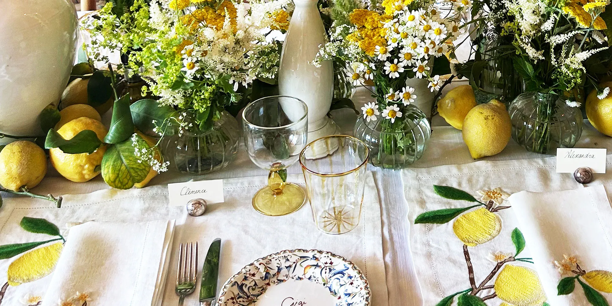 ガラスやリネンなど、軽快な素材使いとフレッシュな色調が特徴で、カジュアルなブランチや屋外の食事にも似合います。ワイングラスやタンブラー、ナプキンに至るまで、コーディネートの楽しさを広げます。