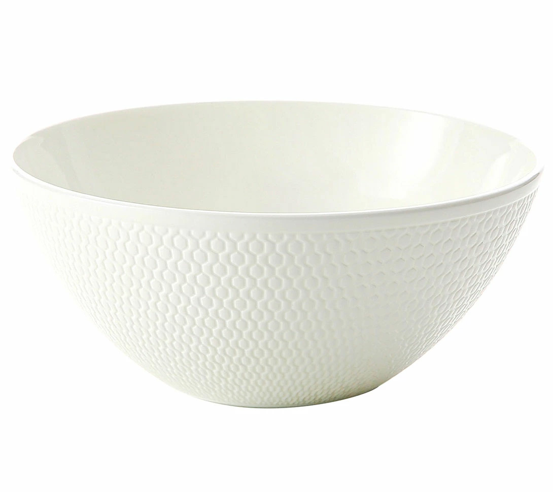 モダンで洗練されたシェイプに、ハニカム(蜂の巣)柄のエンボス模様。 現代人にあわせた表現にウェッジウッドらしいエッセンスを加えたデザインは、 今時のスマートで気取らないダイニングシーンに自然と馴染みます。