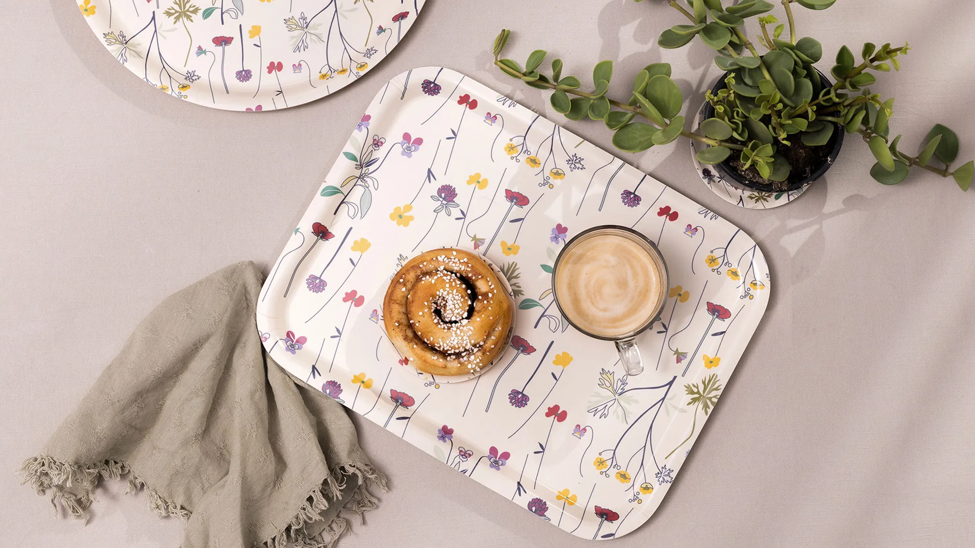 スウェーデンの家庭では、1人分の朝食やアフタヌーンティーなどに、小さな木製トレイがよく使われているそうです。様々なシーンやお好みの柄で、華やかな彩りを与えてみてはいかがでしょうか。使わないときは、壁に立てかけておくだけでもおしゃれなものばかりです。