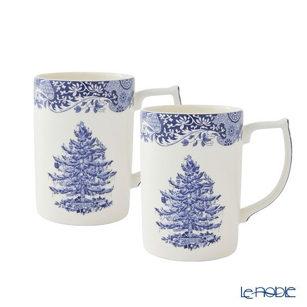 スポード ブルーイタリアン クリスマスツリー マグカップ 340ml ペア