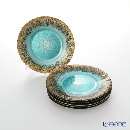 4. Vetro Felice ヴェトロ フェリーチェ フラッシュ プレート 21.5cm ターコイズブルー&ゴールド