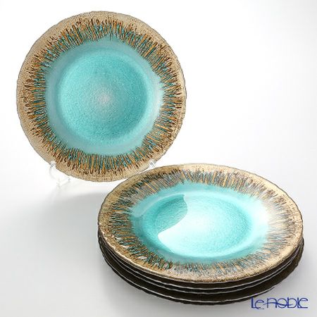 4. Vetro Felice ヴェトロ フェリーチェ フラッシュ プレート 33cm ターコイズブルー&ゴールド