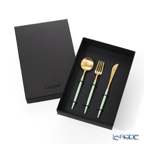 クチポール ゴア GOA セラドン/ゴールド デザート3点セット マット仕上げ 【ブランドボックス付】